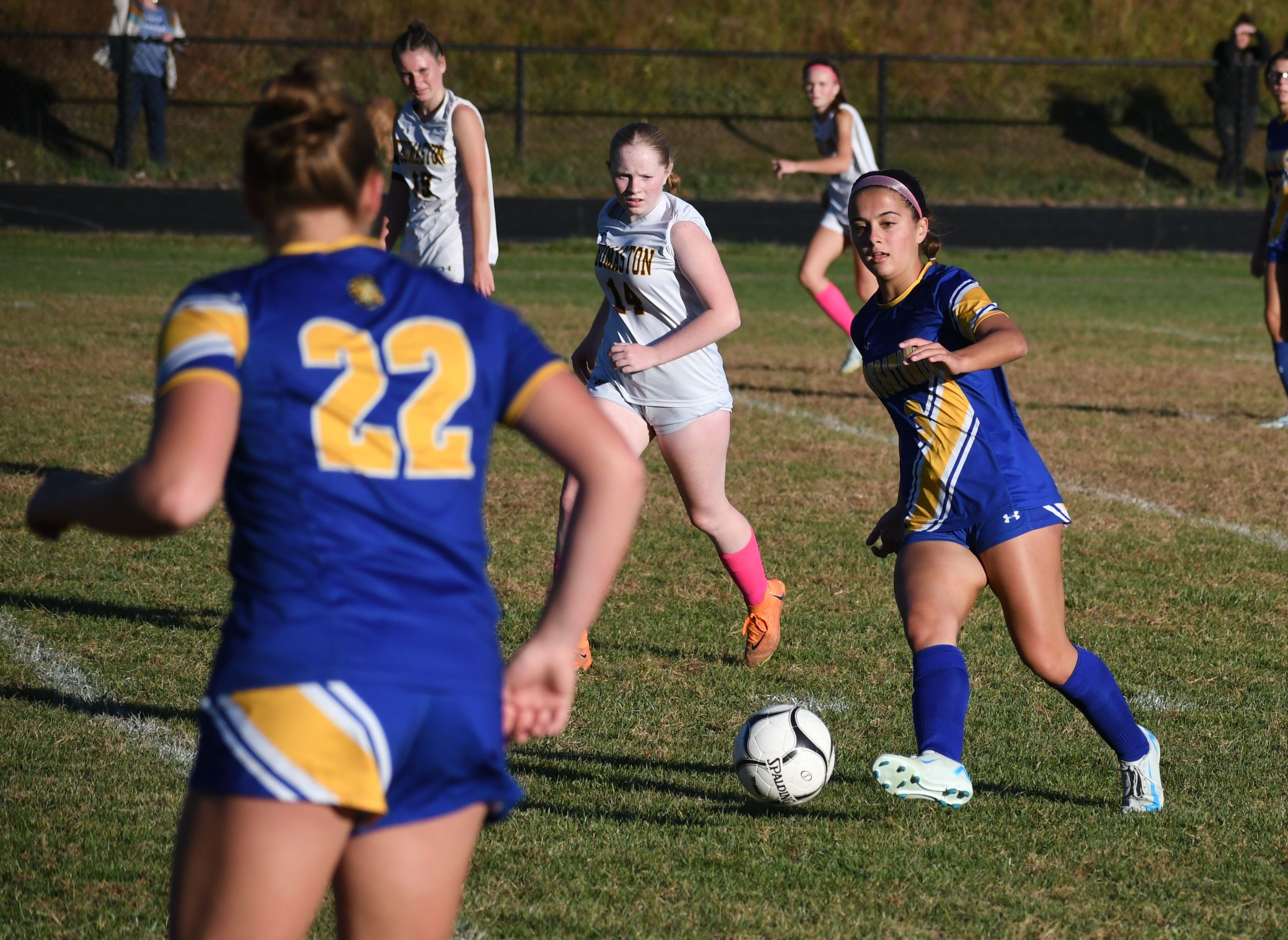 FALLS VILLAGE — The top two girls soccer teams in the Berkshire League met for the first time Oct. 17 when Housatonic Valley Regional High School hosted Thomaston High School. Thomaston won 3-2 in a come-from-behind victory over HVRHS.