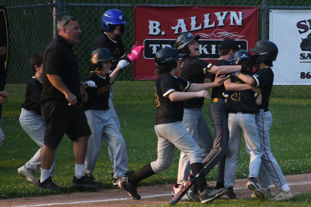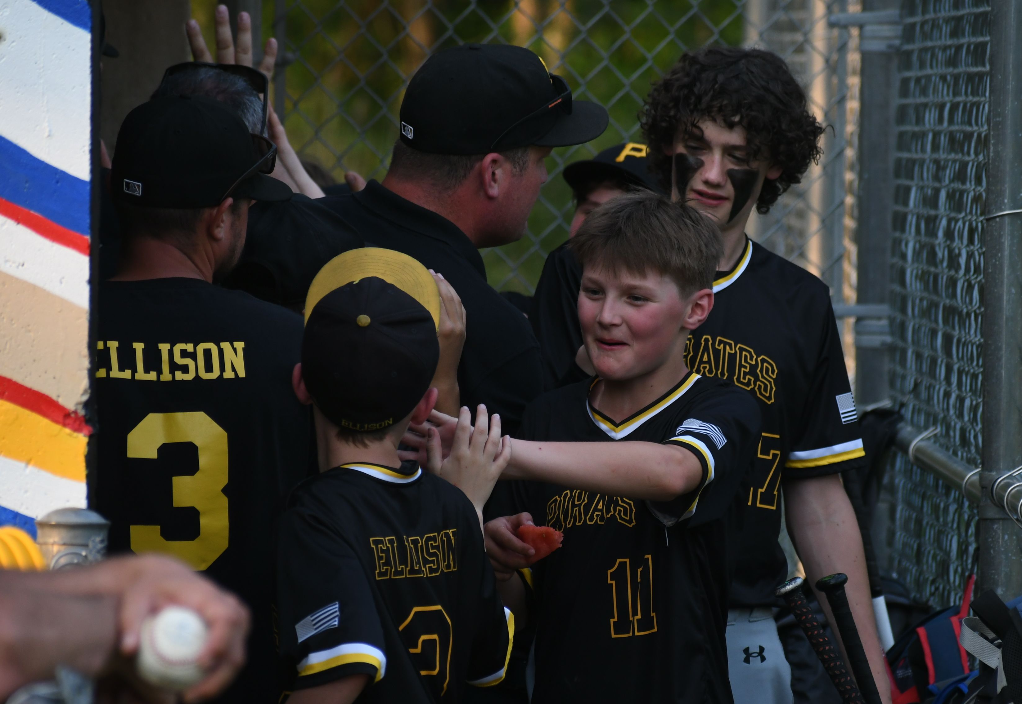 Milo Ellison sends a fly ball to left field, bringing home Brody Ohler and Sam Hahn in a walk-off win for the Canaan Pirates June 11.