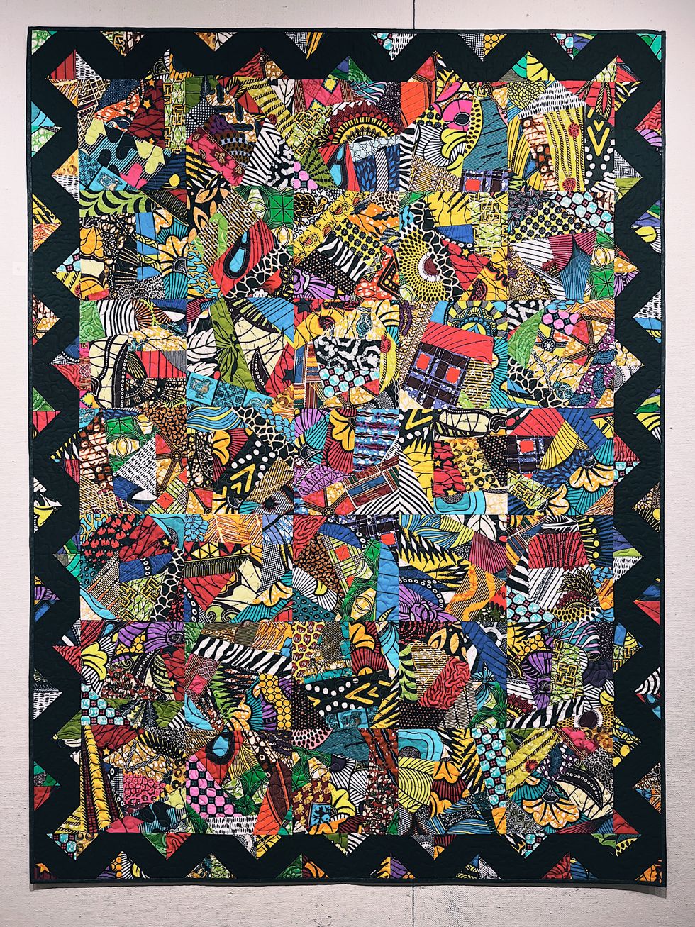Upstairs, Litchfield-based fiber artist Karen Griska’s large quilts take inspiration from African tradition, although she has also worked in the styles of Amish quilting as well as the Black American tradition of Gee’s Bend, which began in an Alabama town of the same name.
