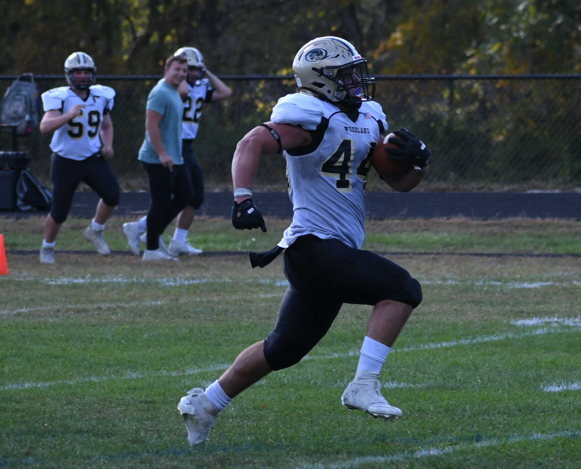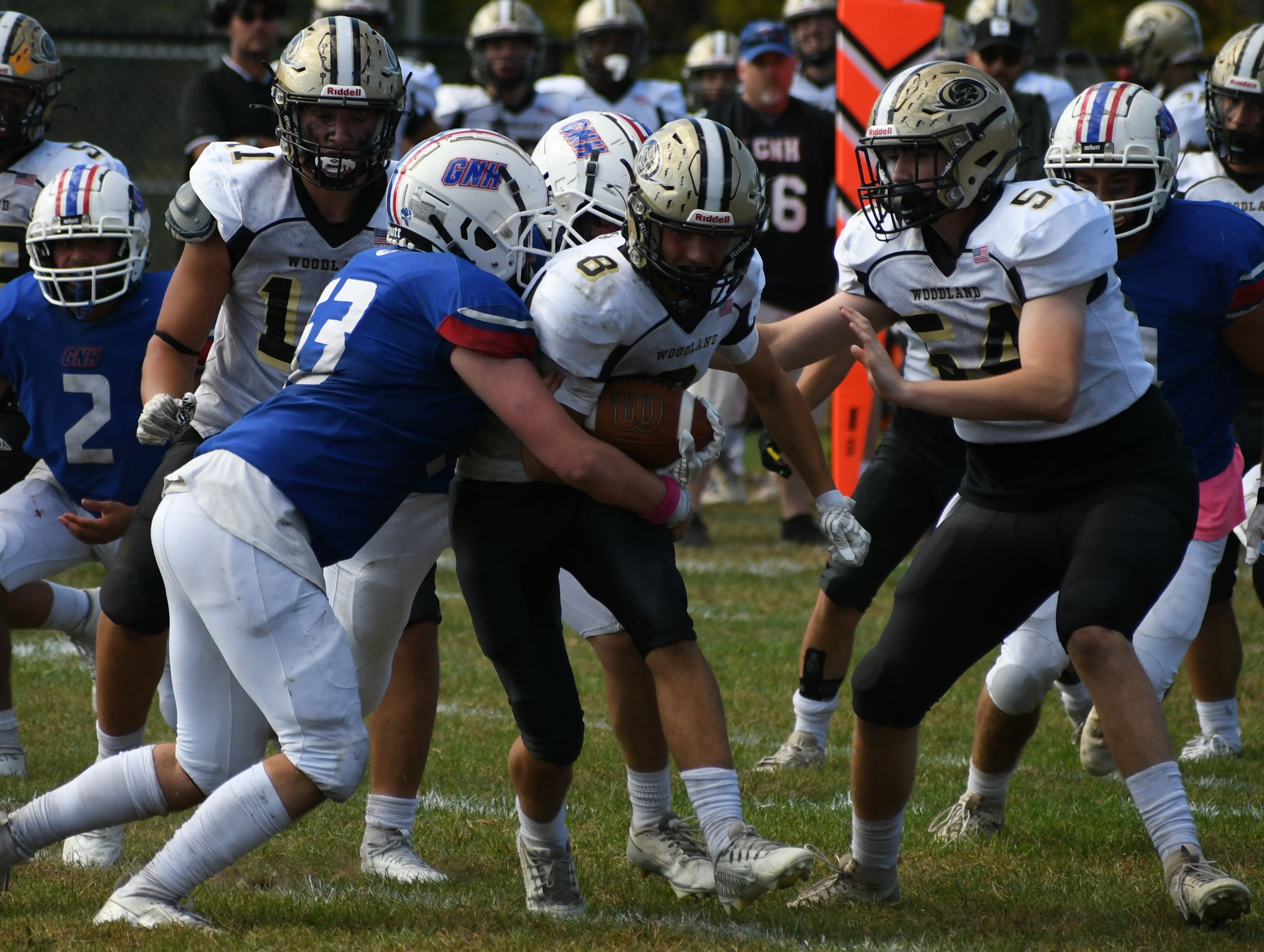 In the second quarter, both teams added to their scores. Woodland scored before GNH answered with a rushing touchdown from Ty Devita. At halftime, Woodland led 21-14.